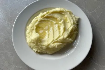 ШАГ 7 Слить воду и пропустить картофлеь через пресс/размять толкушкой.