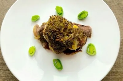 ШАГ 11 Достать из духовки и развернуть фольгу. Нарезать зеленые стебли для украшения.