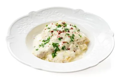 Минтай на сковороде в сливочном соусе