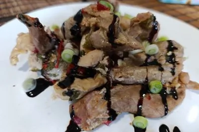 Бедро индейки с болгарским перцем и луком в соевом соусе