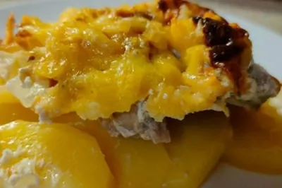 ШАГ 11 Выложить мясо на картофель с ананасом.