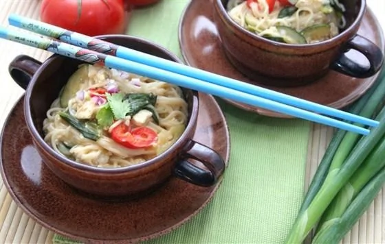 ШАГ 1 Сварите лапшу в кипящей воде 2-3 минуты до мягкости. Слейте и промойте под холодной водой.