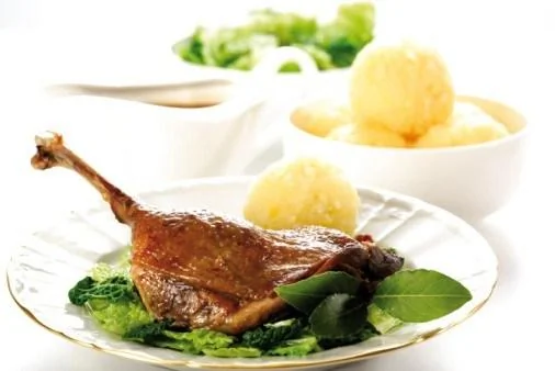 ШАГ 3 Уложить капусту на блюдо, на нее — разрубленного на части гуся. Подавать к столу горячим.
