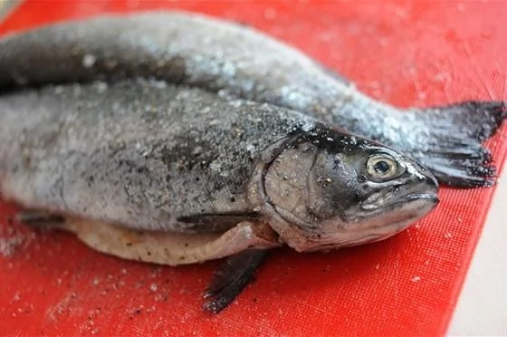 ШАГ 1 Щедро натрите рыбу солью и перцем изнутри и снаружи.