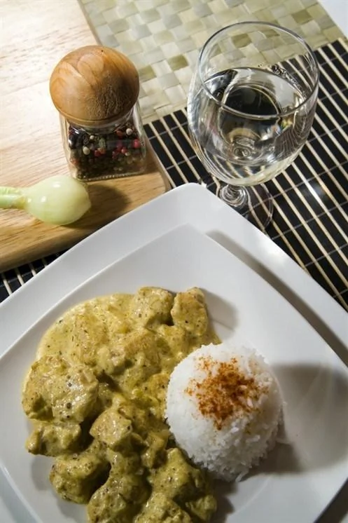 ШАГ 3 Готовое мясо переложить на блюдо и полить протертым вместе с яблоками и овощами соусом. Этот соус должен быть однородной консистенции и не очень густым. Гарнир — рис, приготовленный по-индийски.