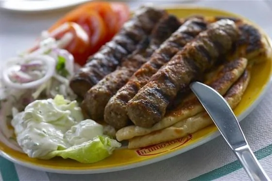 ШАГ 5 Тут же подаем кебаби вместе с тонким лавашем, томатной сацебелой, мелко нарезанным луком и зернами граната. Вовремя пришедший гость кладет кебаби на лист лаваша, посыпает его луком и зернами граната, поливает сацебелой, заворачивает и уплетает за обе щеки. Такова награда за пунктуальность.