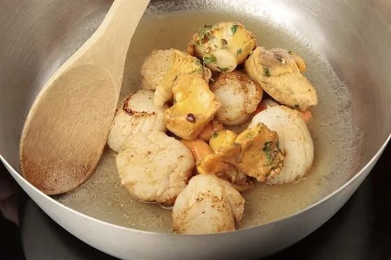 Жареные гребешки под соусом бер-блан