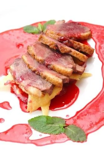Утиные грудки в перце под черничным соусом