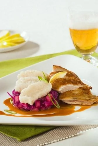 Куриные грудки в тмине с кисло-сладкой красной капустой