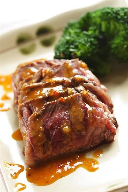 ШАГ 5 Разложите мясо по тарелкам и полейте соусом.