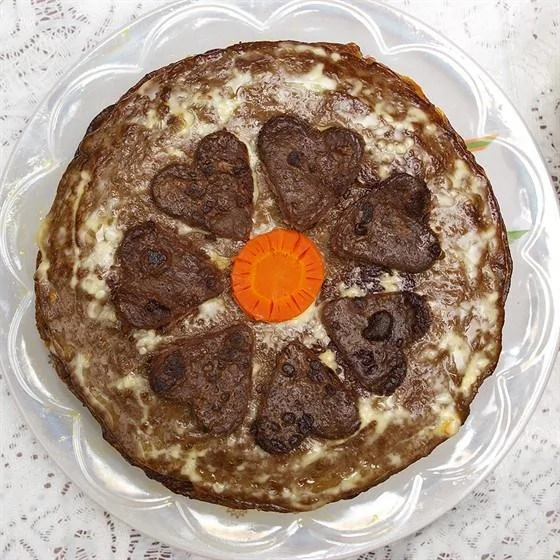 ШАГ 11 На блюдо выложить печеночный корж, намазать смесью из моркови и лука с майонезом. Накрыть другим коржом, который намазать смесью из белков с майонезом, накрыть третьим коржом, который намазать оставшимся майонезом.