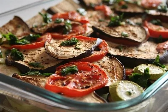 ШАГ 4 Поставить противень в духовку, разогретую до 200 градусов, и печь до тех пор, пока верхний слой овощей не приобретет золотистый цвет.