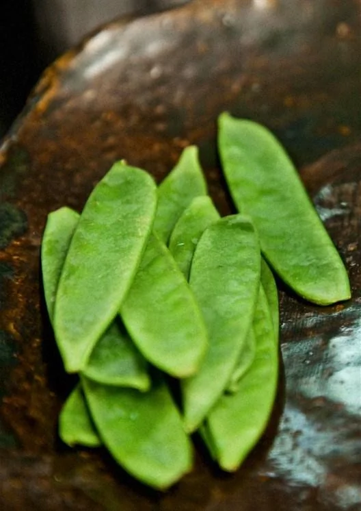 ШАГ 4 Горошек разрезать вдоль на горизонтальные полоски.