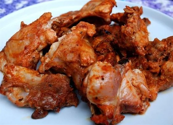 ШАГ 1 Тушку кролика порезать на порционные куски и замочить в маринаде из вина, порезанного лука и специй на один-два дня.