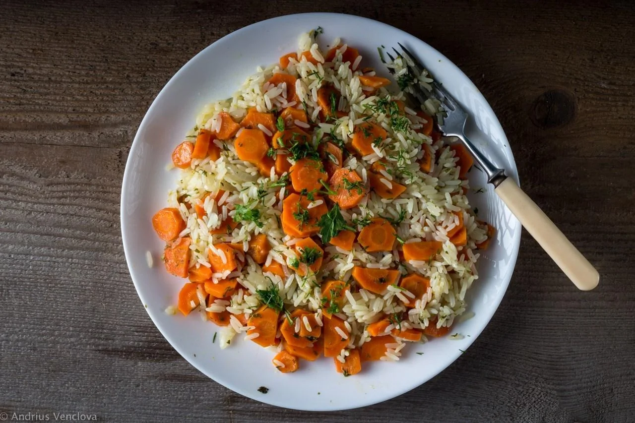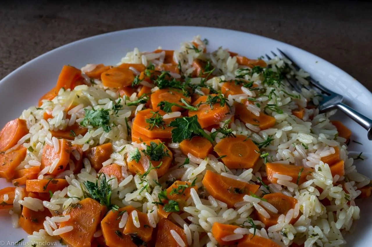 Ингредиенты для приготовления Морковь тушеная, с рисом: