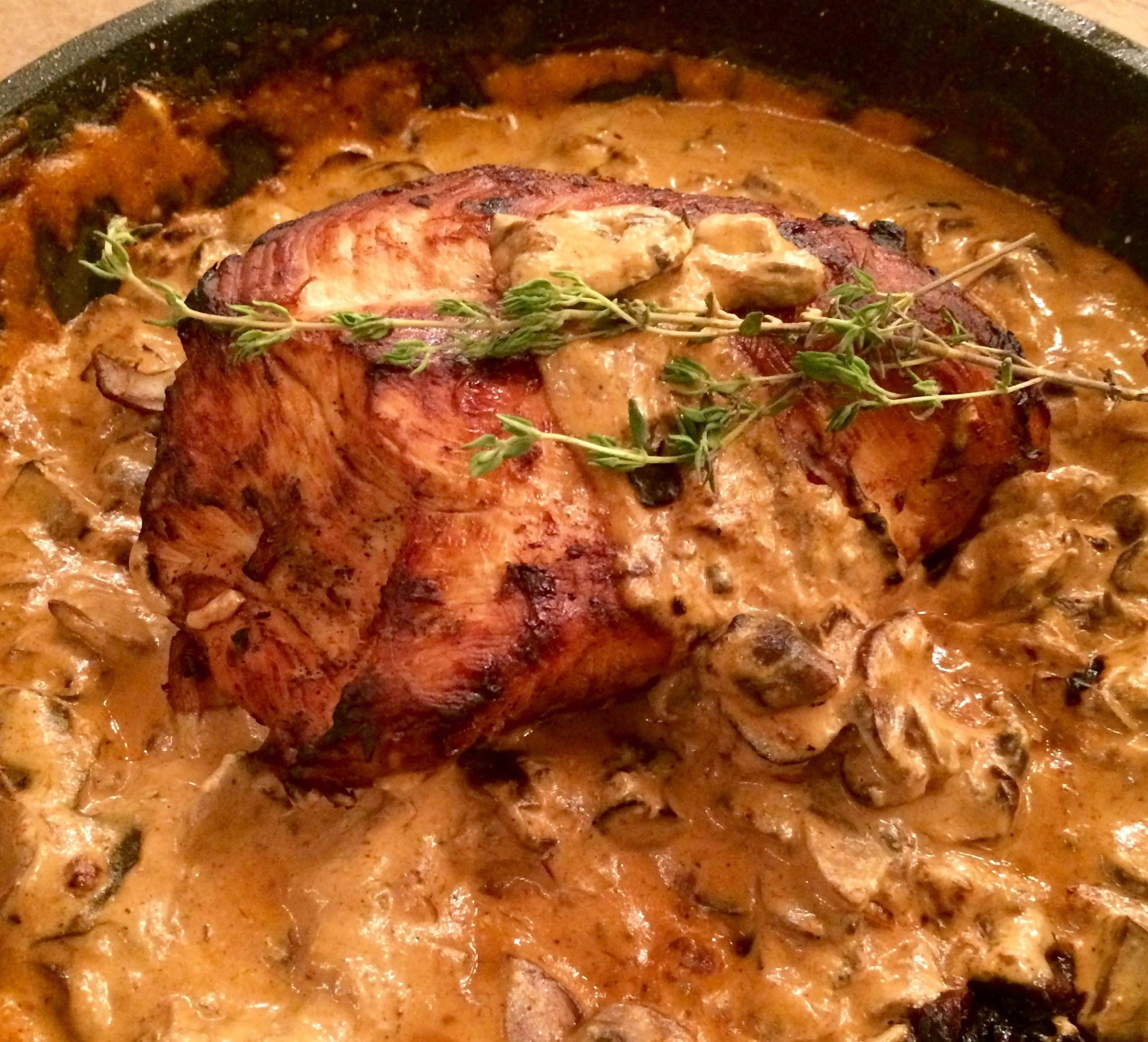 Запеченое филе индейки в сливочно-грибном соусе