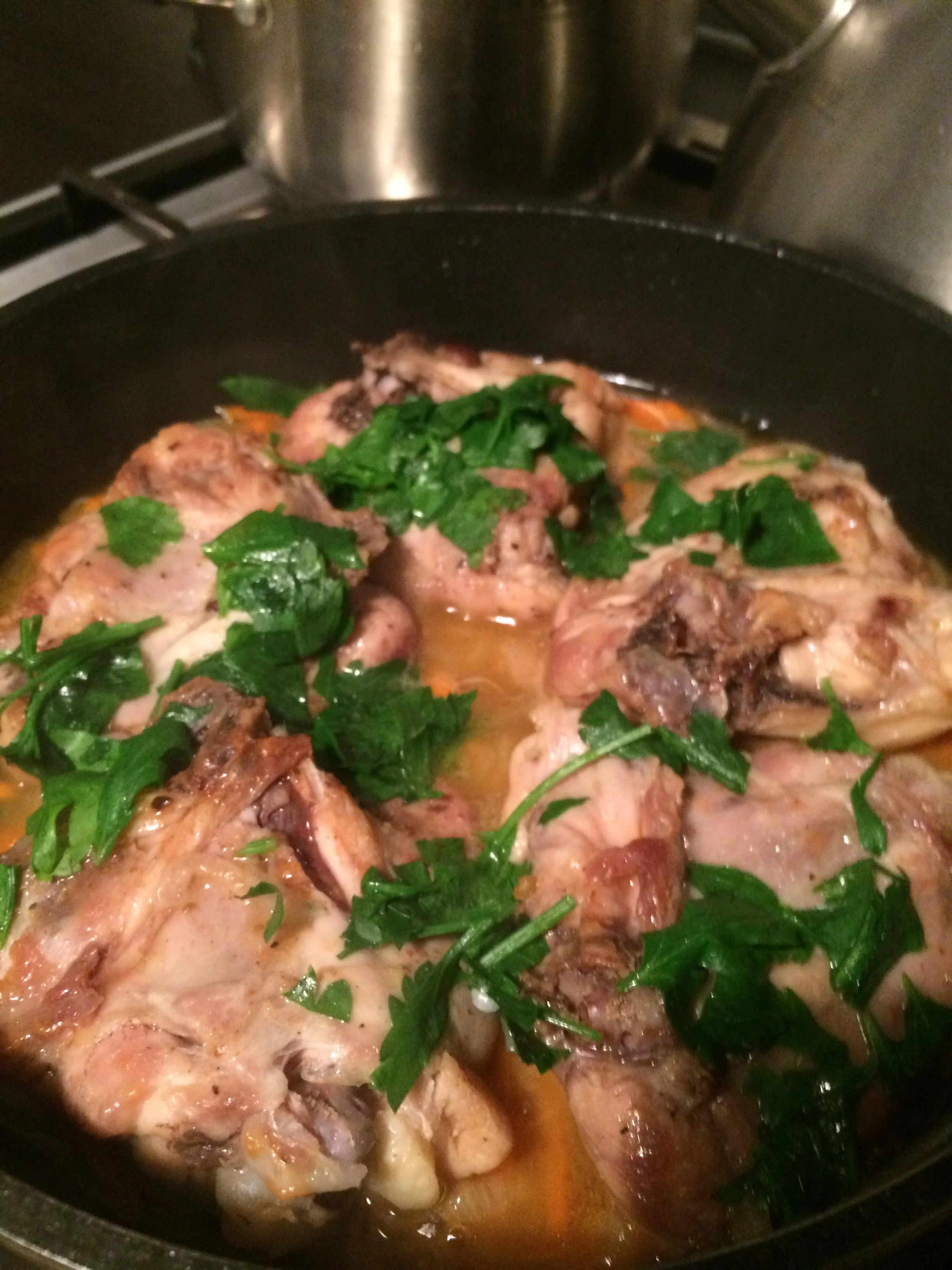 ШАГ 4 Верните курицу в сковороду, положив кожей вниз в овощи.