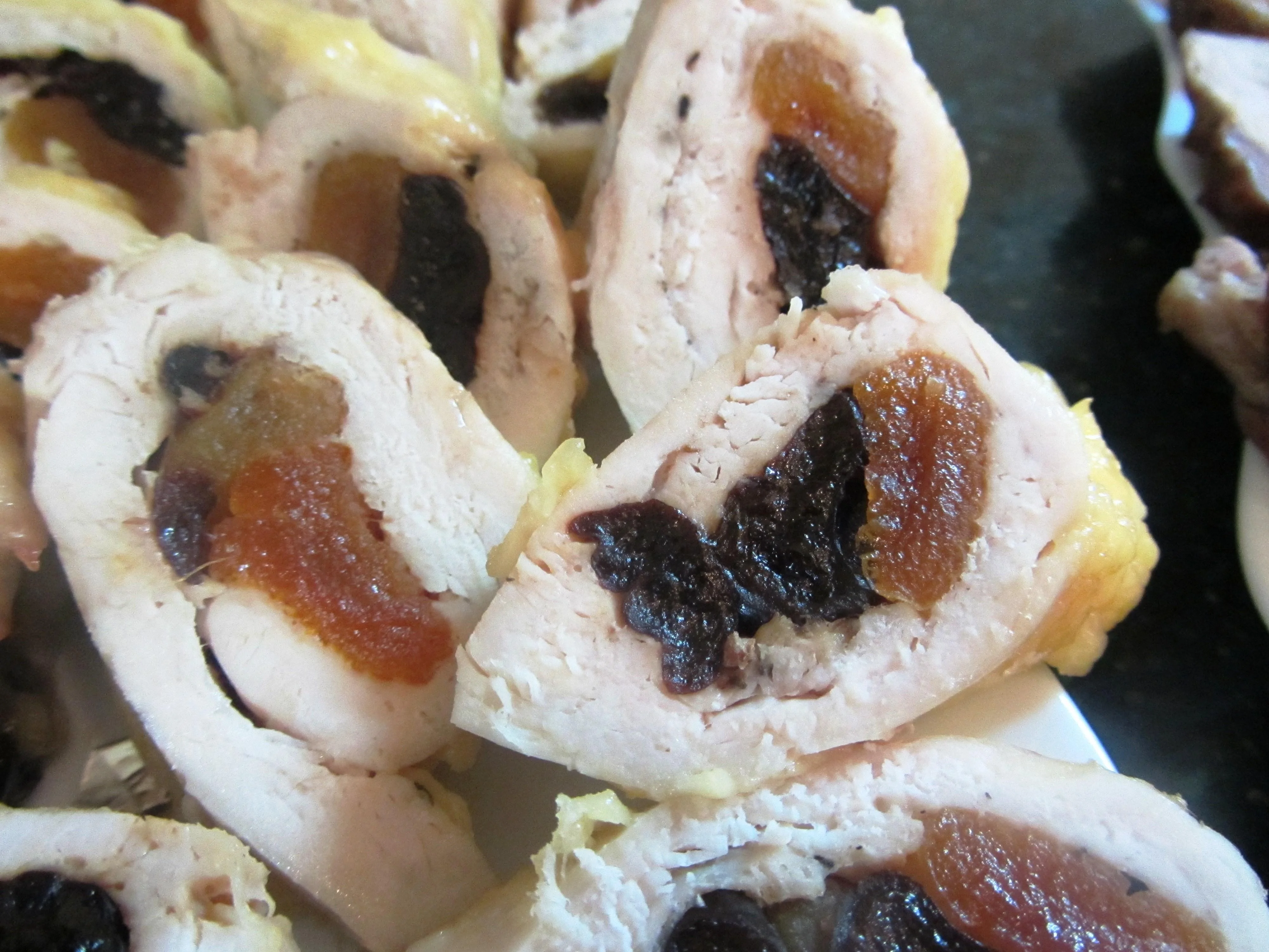 ШАГ 2 Чтобы приготовить начинку, растопите масло и потушите лук. Добавьте чернослив, абрикосы, изюм и грецкие орехи. Смешайте ингредиенты, добавьте специи и охладите. Начините ножку и придайте ей правильную форму. Обвяжите её верёвкой или используйте специальные крепления (например, крепления от вертела).
