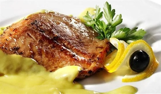 ШАГ 3 Натрите рыбные стейки солью и перцем. Выложите на смазанную маслом решетку и жарьте по 5 минут с каждой стороны до готовности. Выложите на тарелки, сверху положите небольшое количество соуса и подавайте с дольками лайма.