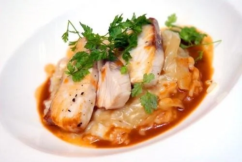 Полосатый окунь на гриле с имбирно-манговым соусом