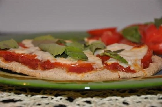 ШАГ 6 Выложите лепешки на противень, смажьте томатным соусом, посыпьте кусочками моцареллы и крупно порубленным базиликом.