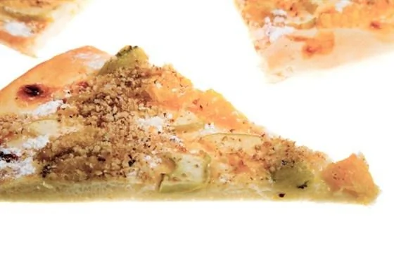 Пицца с грушей, луком, орехами и двумя видами сыра