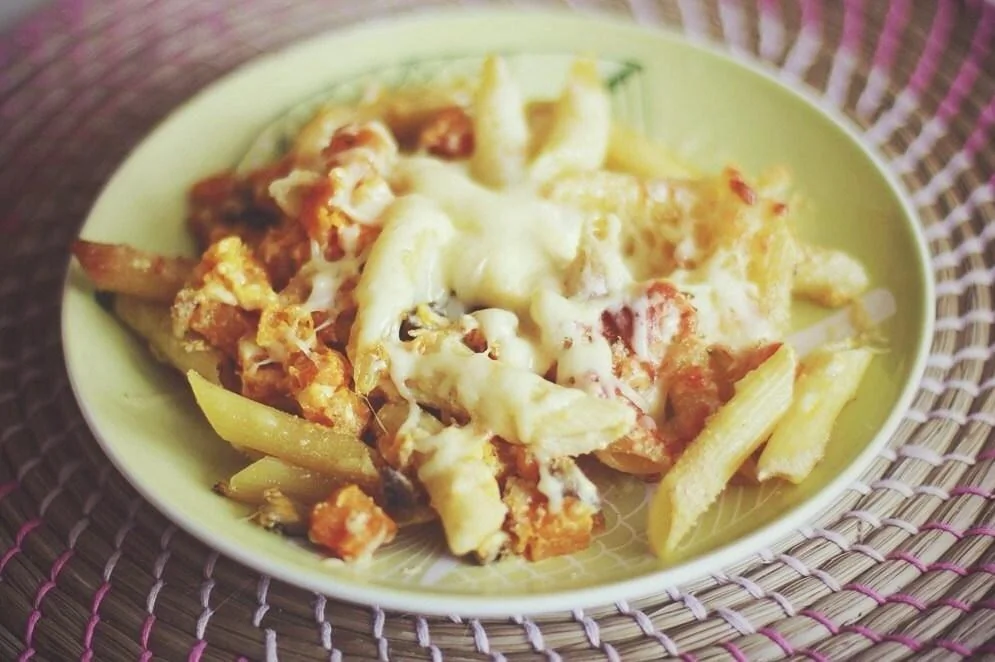 Запеченная паста с тыквой и грибами под сырной корочкой