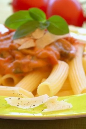 Паста с тыквой, грибами, горгонзолой и чипсами из шалфея
