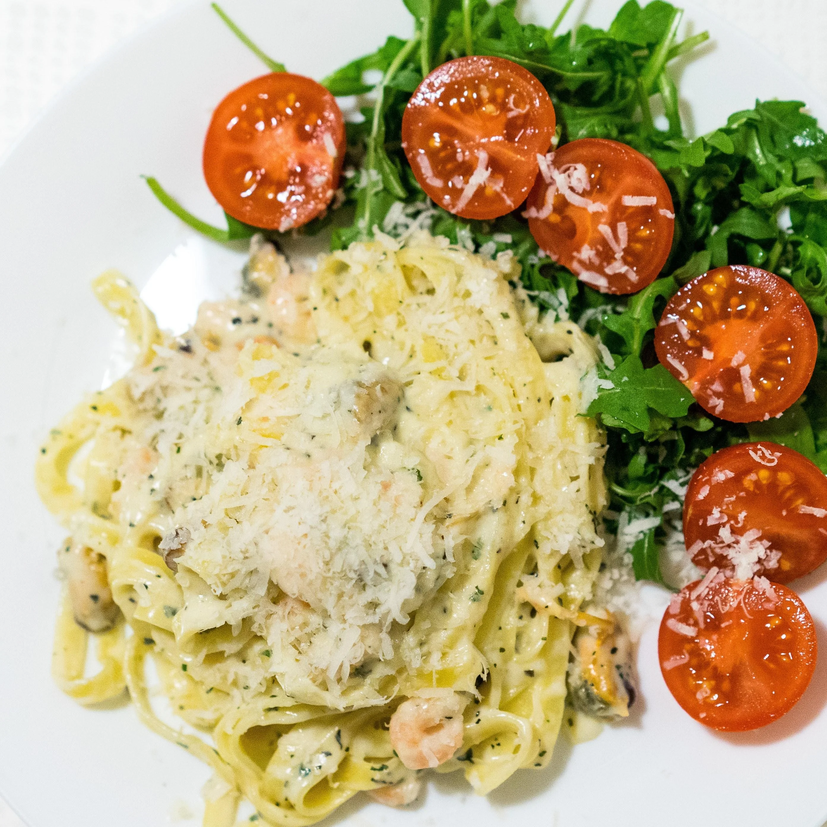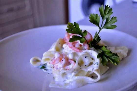Ингредиенты для приготовления Феттучини с креветками под сливочным соусом: