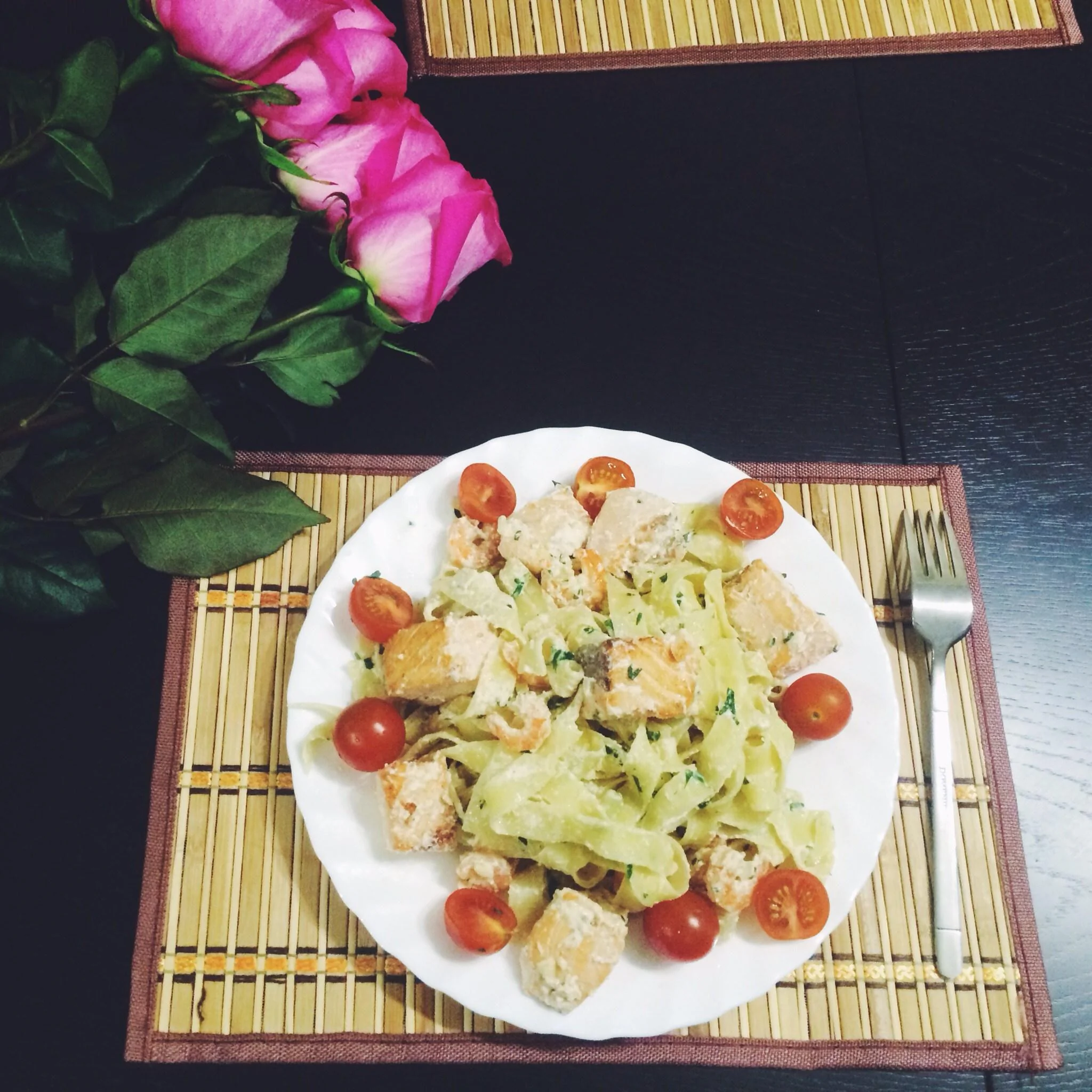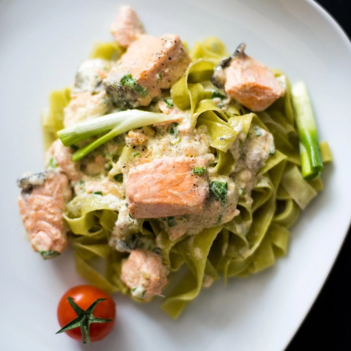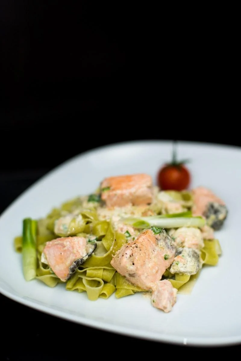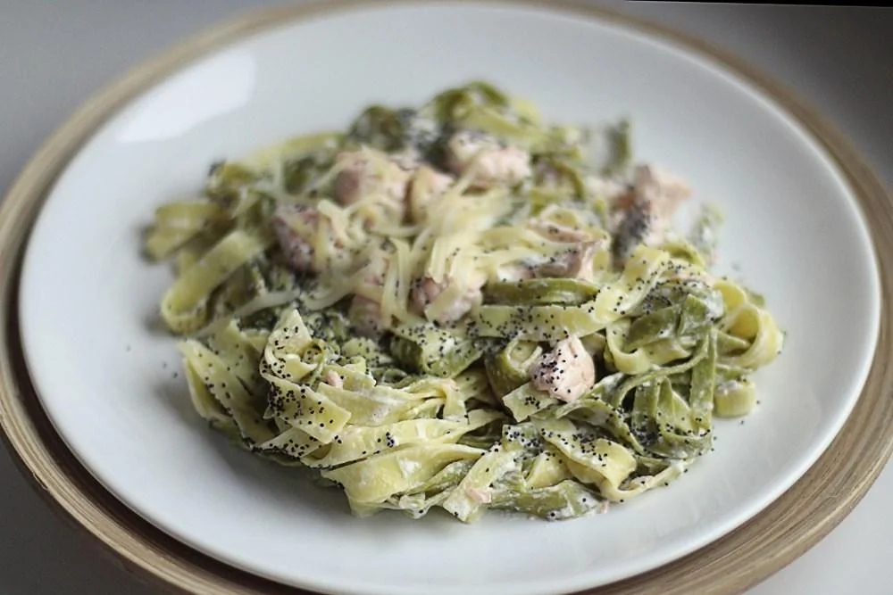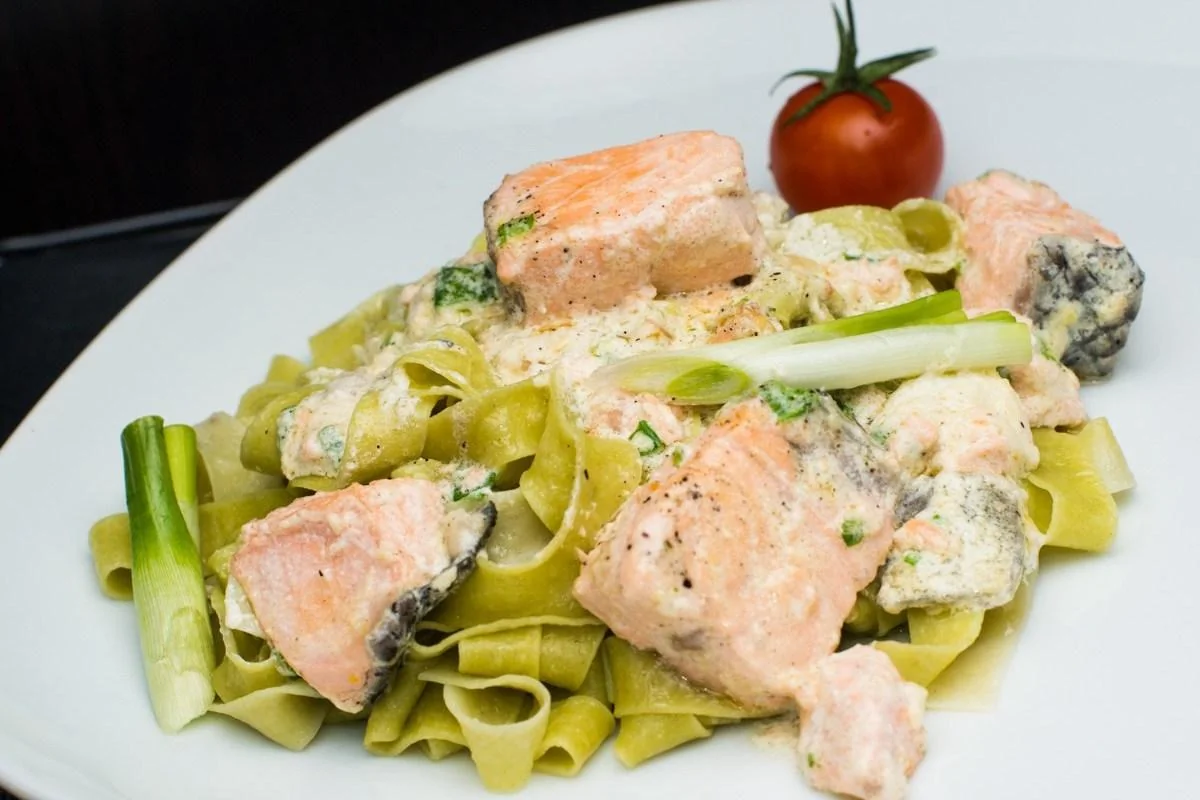 Паста с семгой в сливочно-чесночном соусе