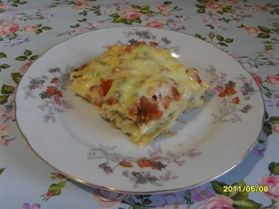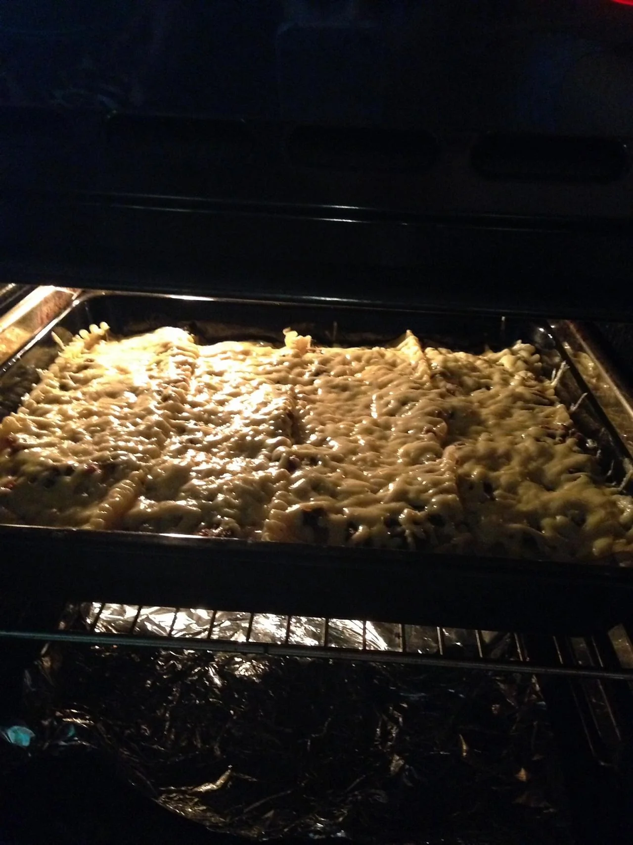 ШАГ 5 В форму для запекания (я использовала форму размером 17х25 см и высотой 5 см) выложить в один слой листы лазаньи (внимательно прочтите инструкцию на упаковке, некоторые фирмы предлагают листы лазаньи отварить, некоторые — использовать сухие листы). Я листы не отваривала.