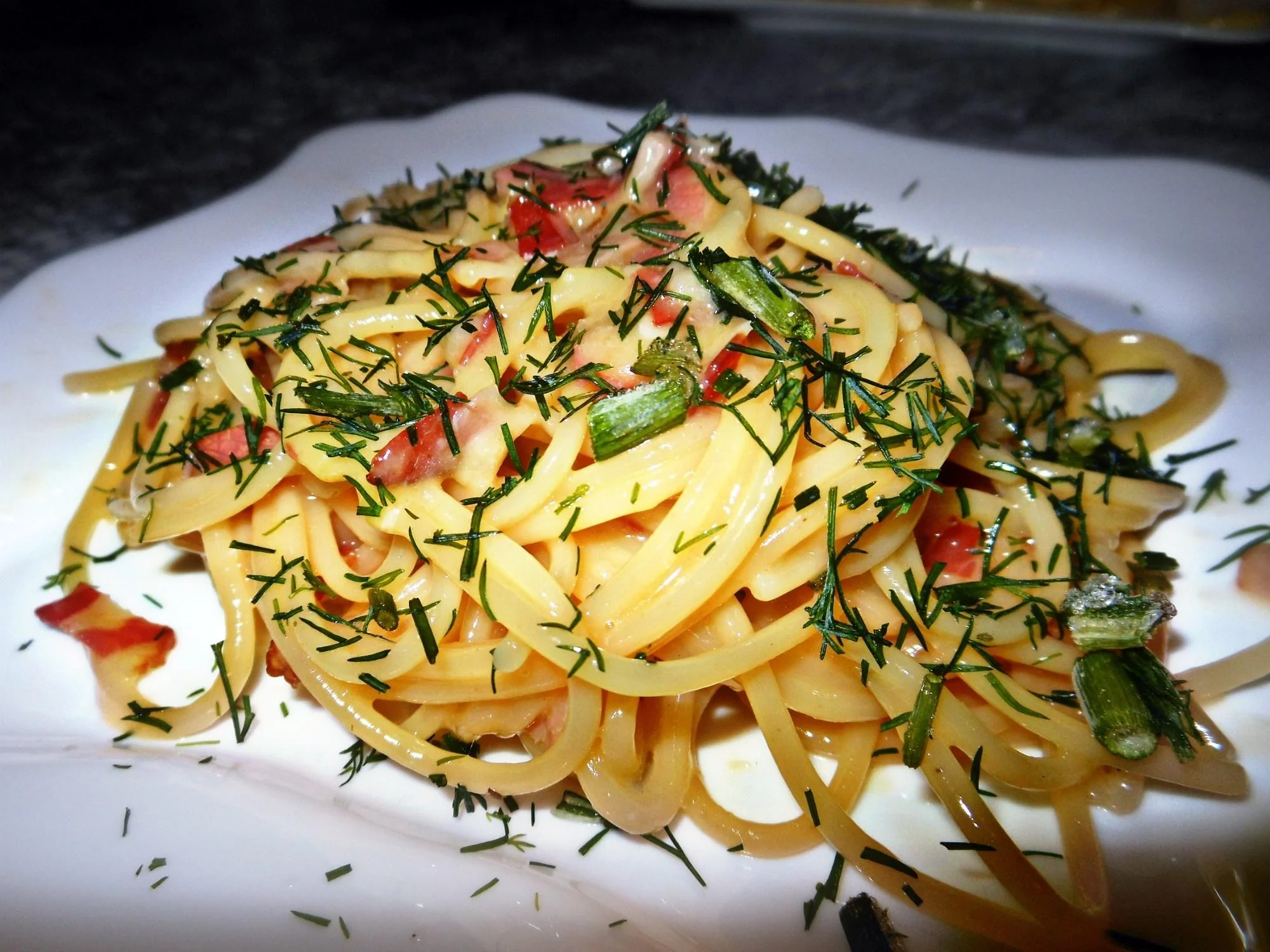 Ингредиенты для приготовления Спагетти карбонара с беконом: