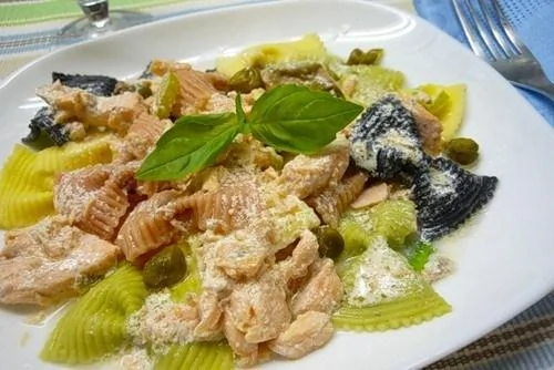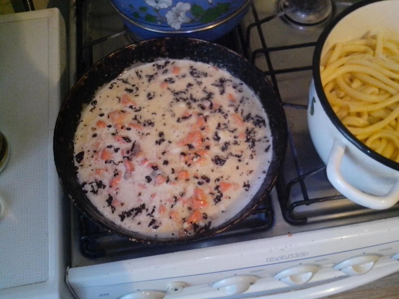 Ингредиенты для приготовления Паста с форелью в сливочном соусе с базиликом: