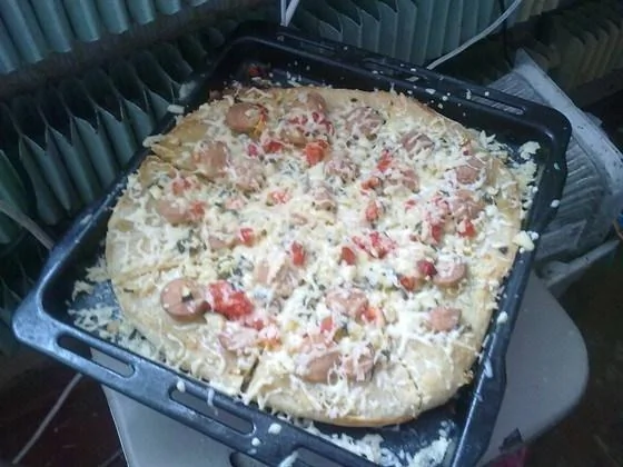 Ингредиенты для приготовления Пицца с сосисками и овощами: