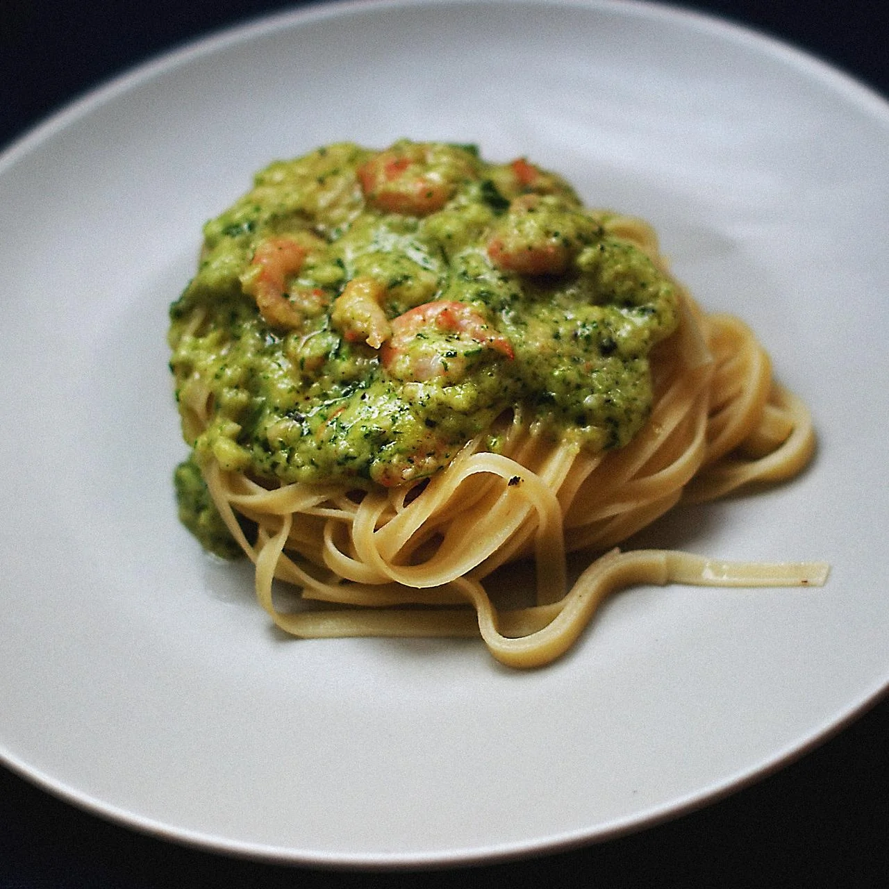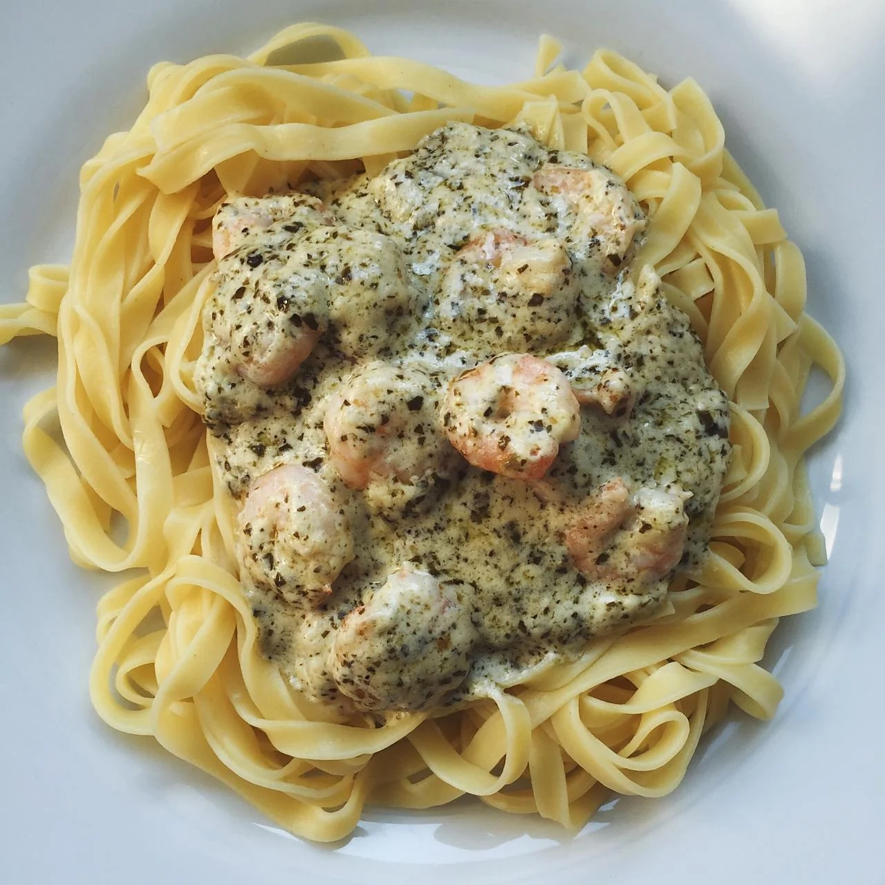 Ингредиенты для приготовления Паста с креветками в сливочном песто:
