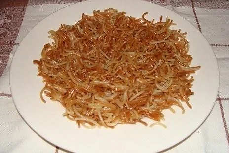 ШАГ 1 На раскаленную сковороду с маслом высыпать вермишель. Жарить, постоянно помешивая.