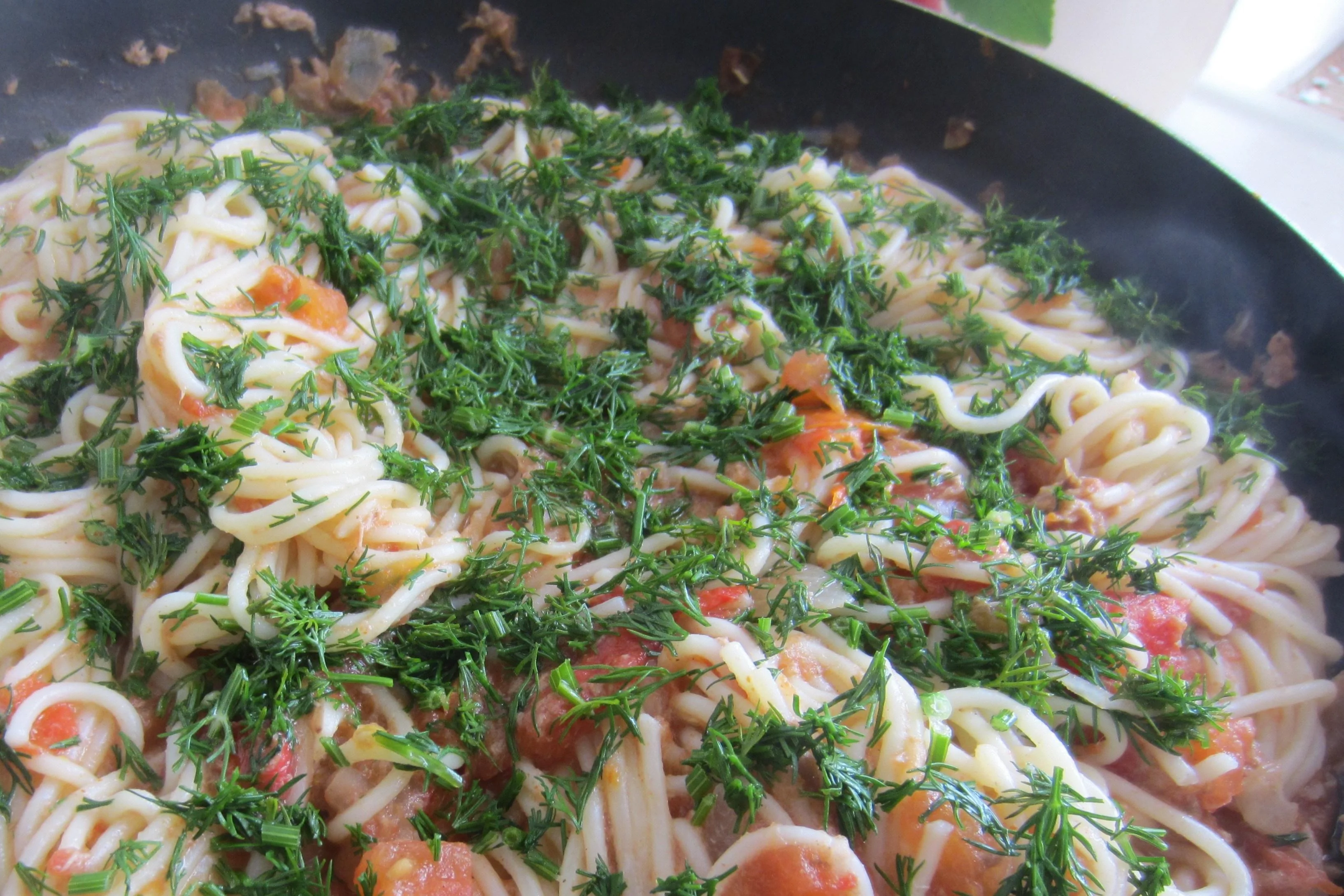 Паста с тунцом и томатами