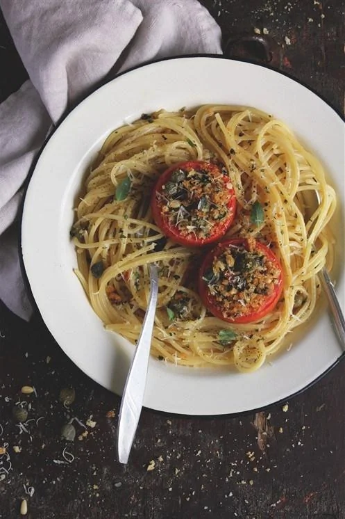 Ингредиенты для приготовления Спагетти с фаршированными томатами: