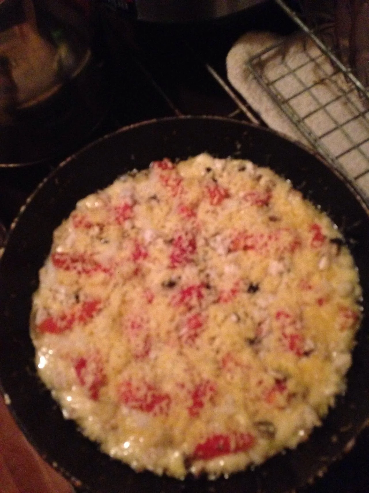 Ингредиенты для приготовления Пицца на сковороде с колбасой и грибами: