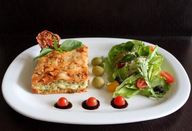 Лазанья с курицей, рикоттой и соусом песто