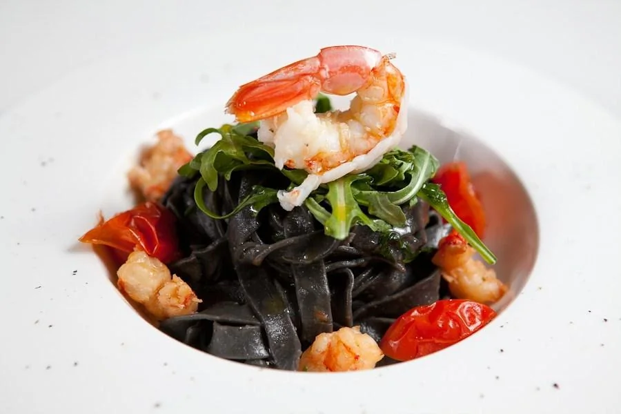 Ингредиенты для приготовления Тальолини неро с креветками и черри:
