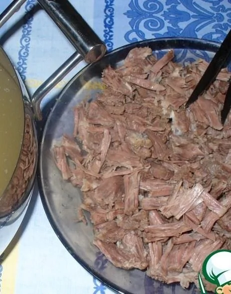 ШАГ 1 Вареную говядину нарезать полосками 0,5 см толшиной.