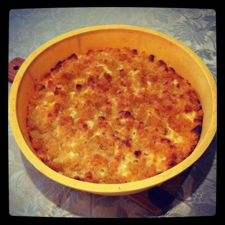 ШАГ 5 Растопите оставшуюся 1 столовую ложку сливочного масла и смешайте с хлебными крошками. Вылейте содержимое на макароны.