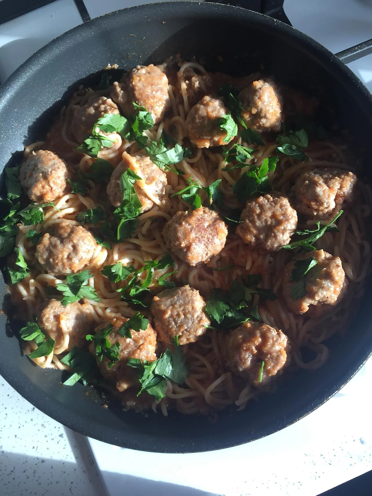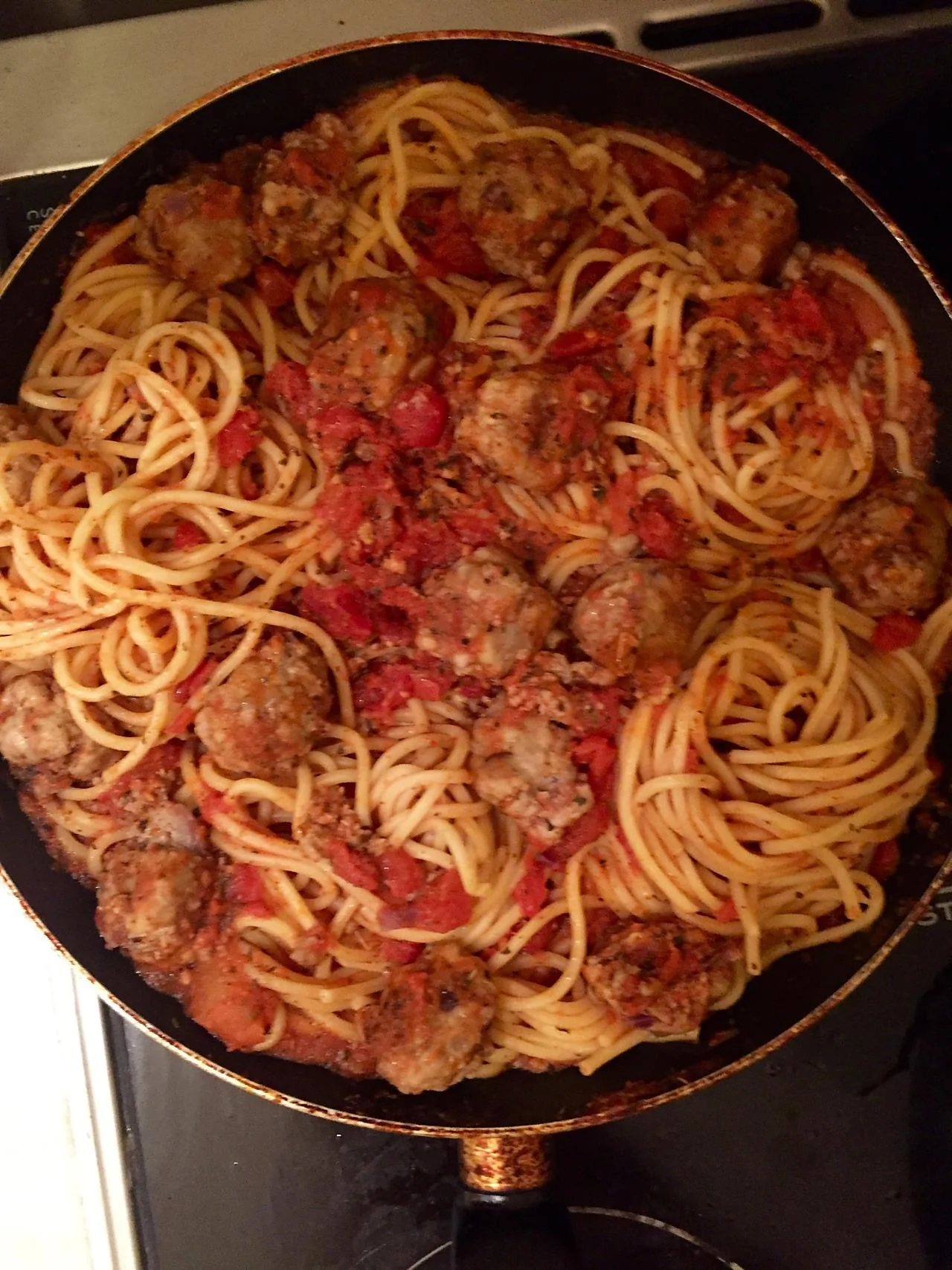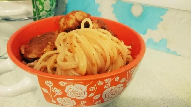 Спагетти с мясными шариками в томатном соусе