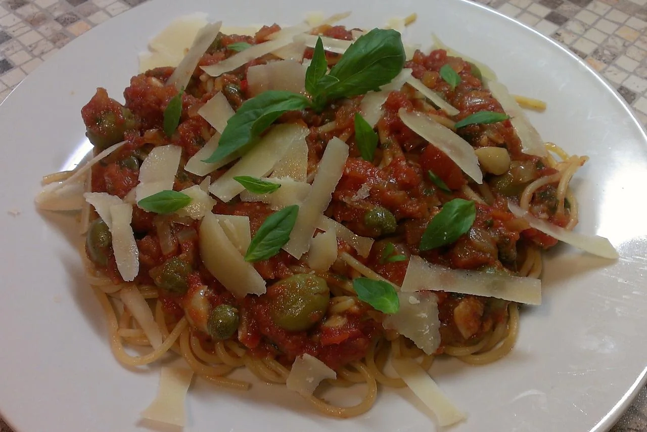 Ингредиенты для приготовления Спагетти а ля путанеска с томатами и анчоусами: