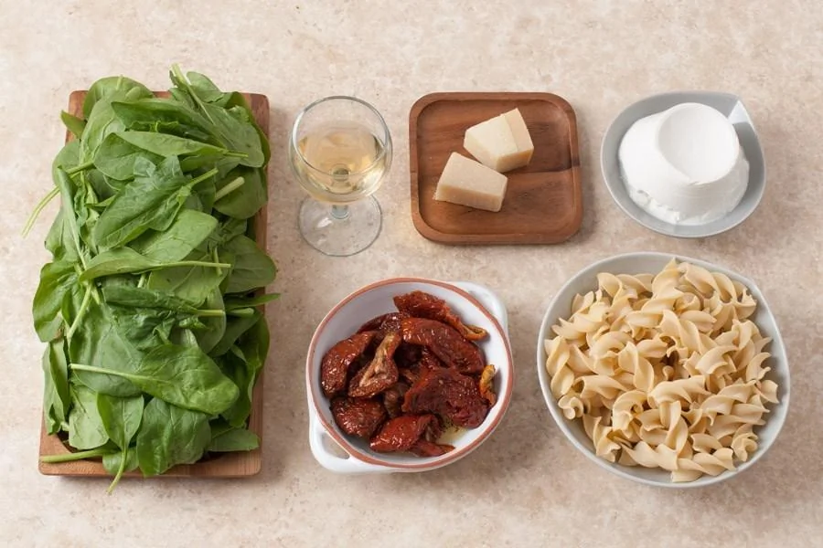 Ингредиенты для приготовления Фузилли с рикоттой и шпинатом: