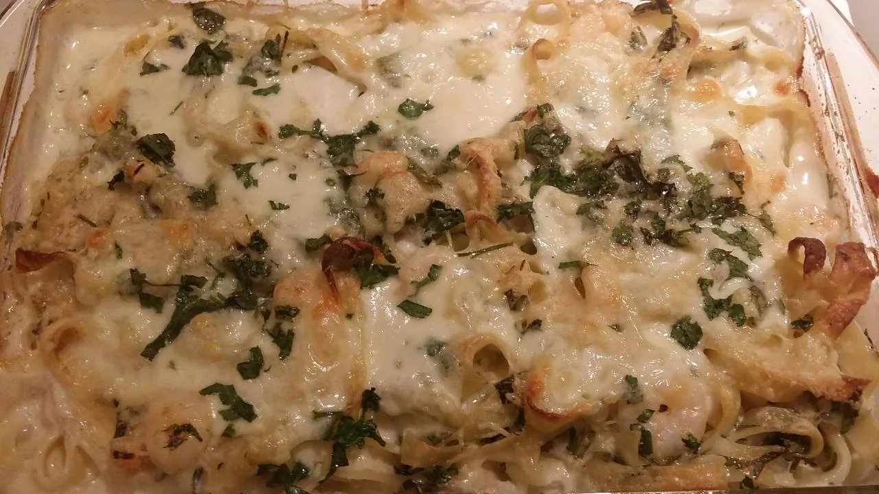 ШАГ 5 Присыпать пармезаном и кусочками моцареллы и вернуть в духовку еще на 10–15 минут. Паста должна покрыться золотистой корочкой. Немного остудить, приправить перцем и украсить листиками петрушки. Подавать в теплом виде.