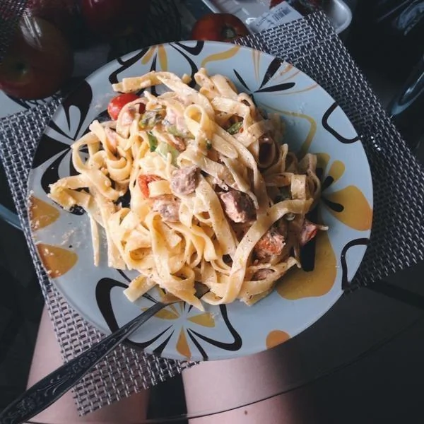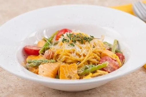 Спагетти с лососем и спаржей в сливочном соусе