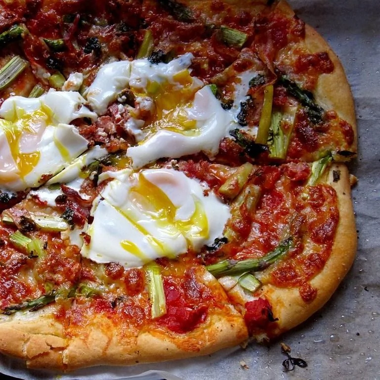 Пицца со спаржей и яйцами