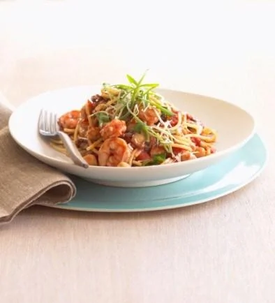 ШАГ 6 Перелейте рыбный бульон в чистую кастрюлю, добавьте шафран и щепотку соли и доведите до кипения. Отправьте вариться спагетти, доведите до кипения и варите еще 10-12 минут, пока они не станут мягкими. Слейте воду и вывалите спагетти на сковороду с соусом. Встряхните содержимое сковороды и тут же подавайте.